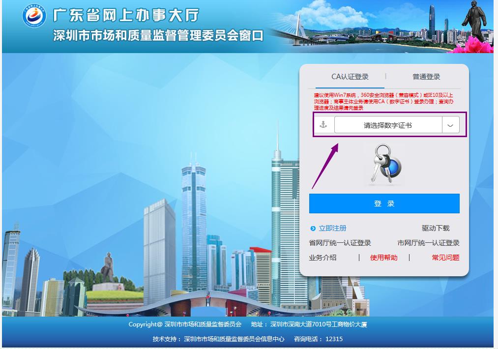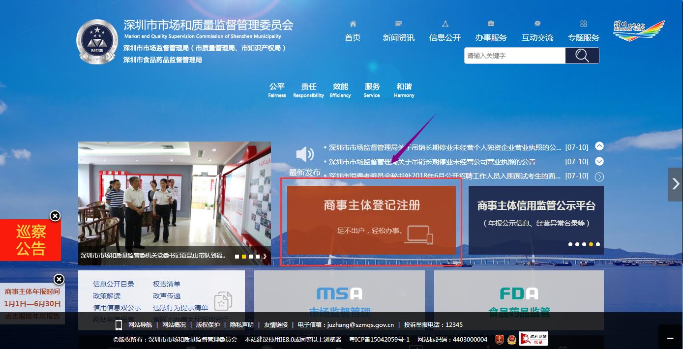 登錄深圳市場(chǎng)監(jiān)督管理局如下圖:
