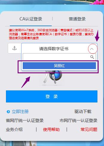 接下來(lái),點(diǎn)擊下拉選項(xiàng),選擇已經(jīng)讀取到的u盾名稱,點(diǎn)擊下面的登錄:如下圖